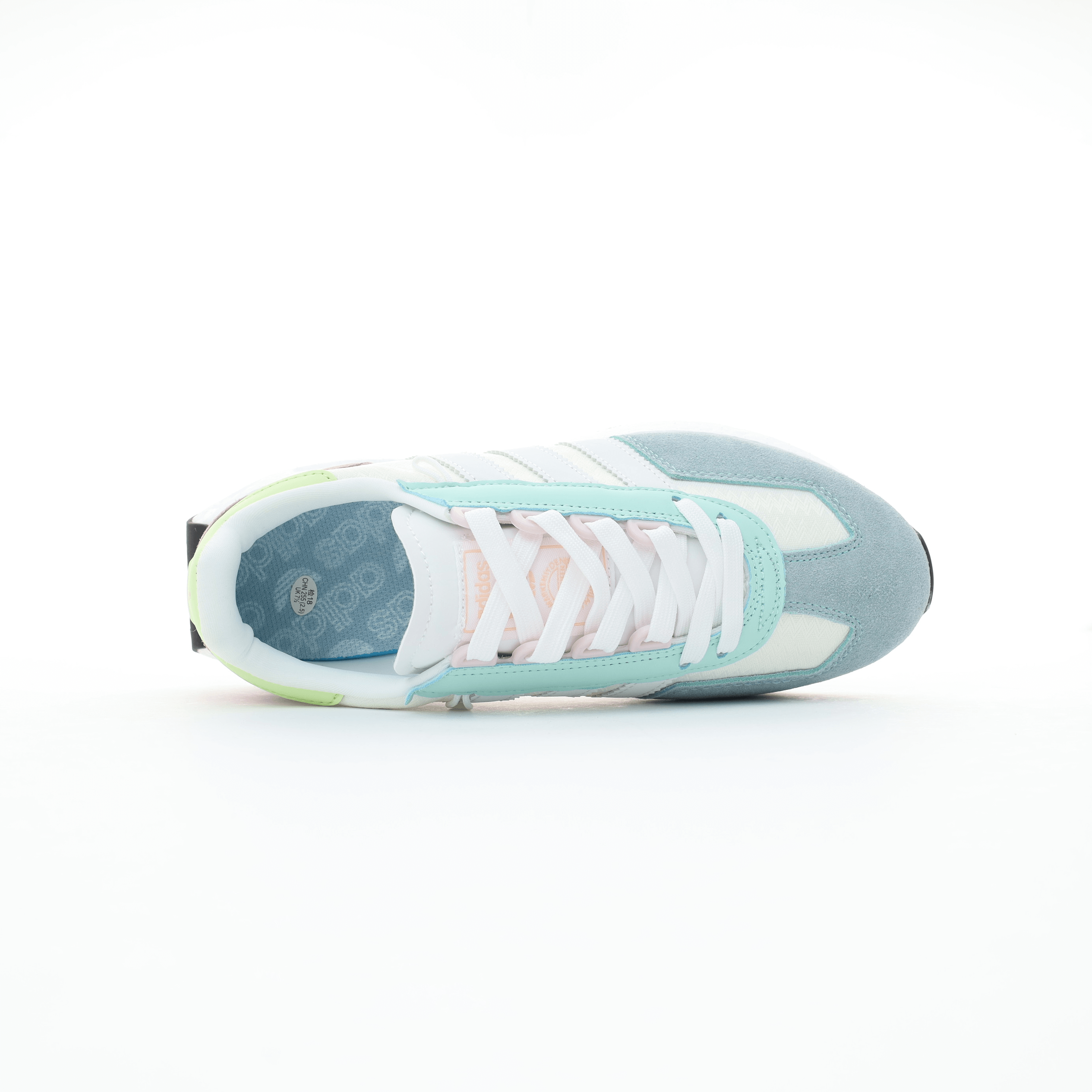 The Adidas Retropy E5 Pastel Mix features a refreshing design that combines the classic character of vintage running shoes with modern touches in soft pastel colors. The white blends with light blue, calm pink, and light green to give the shoe a stylish summer vibe that is easy to coordinate.