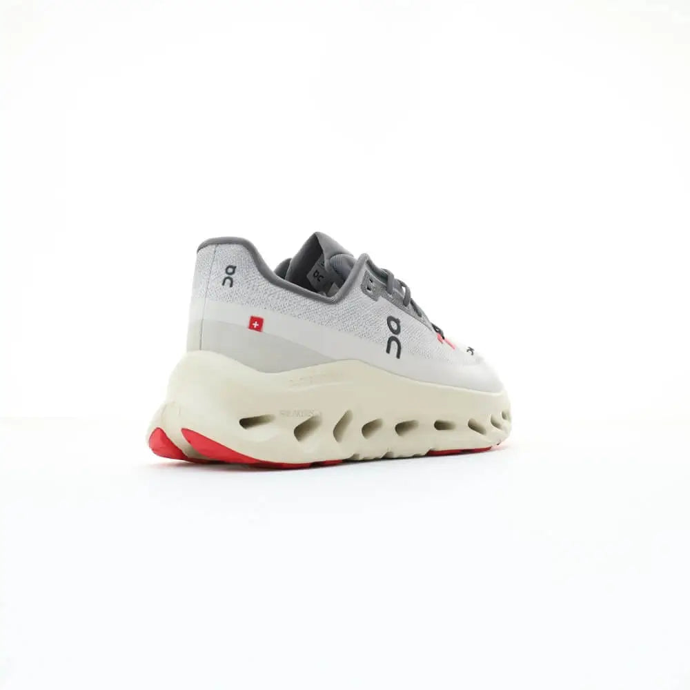 On Cloudtilt lifestyle Gray Red combines cutting-edge running technology with versatile everyday style. Built with CloudTec® cushioning and Helion™ midsole technology, this shoe delivers responsive energy return and superior comfort for both training sessions and casual wear. The breathable mesh upper promotes airflow to keep feet cool, while the engineered outsole provides reliable traction and stability across varied surfaces. Whether you're logging miles or navigating daily activities, this gray and red colorway offers the performance-driven design that On Running is known for.