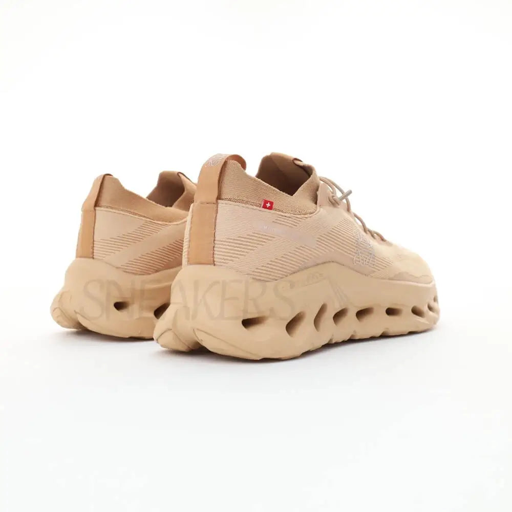 On Cloudtilt Loewe Sneaker – Camel Elevate your casual wardrobe with this unisex sneaker that seamlessly merges luxury design with everyday comfort. Rendered in a sophisticated camel tone, it features On's signature CloudTec sole technology, delivering lightweight cushioning and responsive flexibility for all-day wear. The refined silhouette is enhanced by distinctive LOEWE branding on the sides, creating a polished aesthetic that transitions effortlessly from modern casual outfits to contemporary streetwear. Designed for style-conscious wearers seeking premium comfort without compromise—not intended for running.